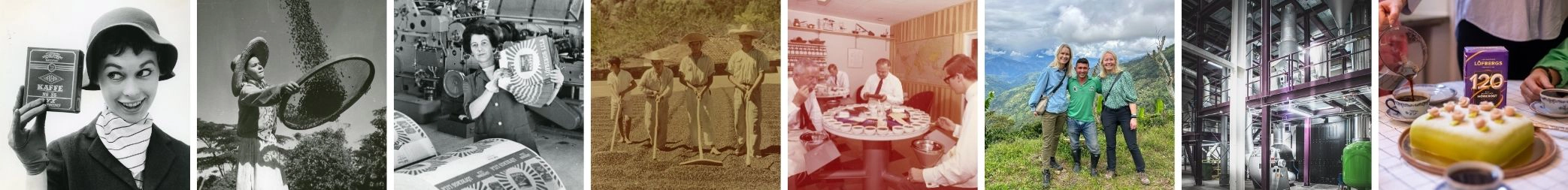 Entä liila väri? Se on meille erityinen, ja siitä saamme kiittää teitä kuluttajia. Jo sata vuotta sitten tarjosimme useita erilaisia kahvilaatuja. Pakkaukset olivat eri värisiä, ja Löfbergsin ylellinen sekoitus liilalla etiketillä nousi nopeasti monien suosikiksi. Kansan suussa meistä tuli “ne liilat”. Nykyään väri on tunnusmerkkimme – ja tae hyvästä mausta sekä siitä, että kahvi tuotetaan ihmisiä ja ympäristöä kunnioittaen. Intohimo kahviin on yhtä vahva tänään kuin vuonna 1906. Vuosien varrella olemme oppineet paljon, nähneet trendien tulevan ja menevän sekä kehittyneet yhdessä kahvinviljelijöiden, asiakkaiden ja kuluttajien kanssa. Ensimmäiset 120 vuotta ovat olleet upeita – ja odotamme innolla matkan jatkumista yhdessä teidän kanssanne.